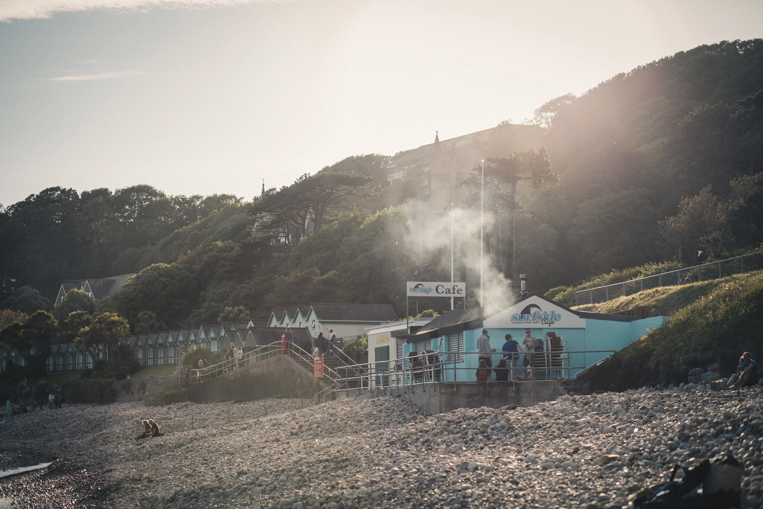 It was a long drive in our rental car, with lots of traffic going into Wales. The sun was out, which was great and we should have had light until 9.30pm, so I wasn’t too worried about arriving a bit later than planned. Langland Bay was our destination and from Google Earth, images online and the webcam it looked perfect: a long curve with a sandy beach going towards the sea for about 100 yards. There is parking near the beach, a restaurant so we could get drinks, food and toilet breaks when we needed them. Very good, in theory. We arrived late and it turned out the whole town had come out to spend time on the beach, the tide was in, so there was about 20 yards of beach for everyone, and the sun was setting behind a hill which meant the light would be gone an hour sooner than expected. That meant we had to improvise and could only do a few of the ideas we had. I’d really hoped we could take the time and experiment. When the light was gone in Langland Bay we jumped in the car and chased the sun, desperately trying to get up higher and in western direction. We ended up jumping out of the car at a bit of farmland with a stream where we shot a set with a blanket and scarf in 5 minutes before the sun was completely gone and we started our long return journey.